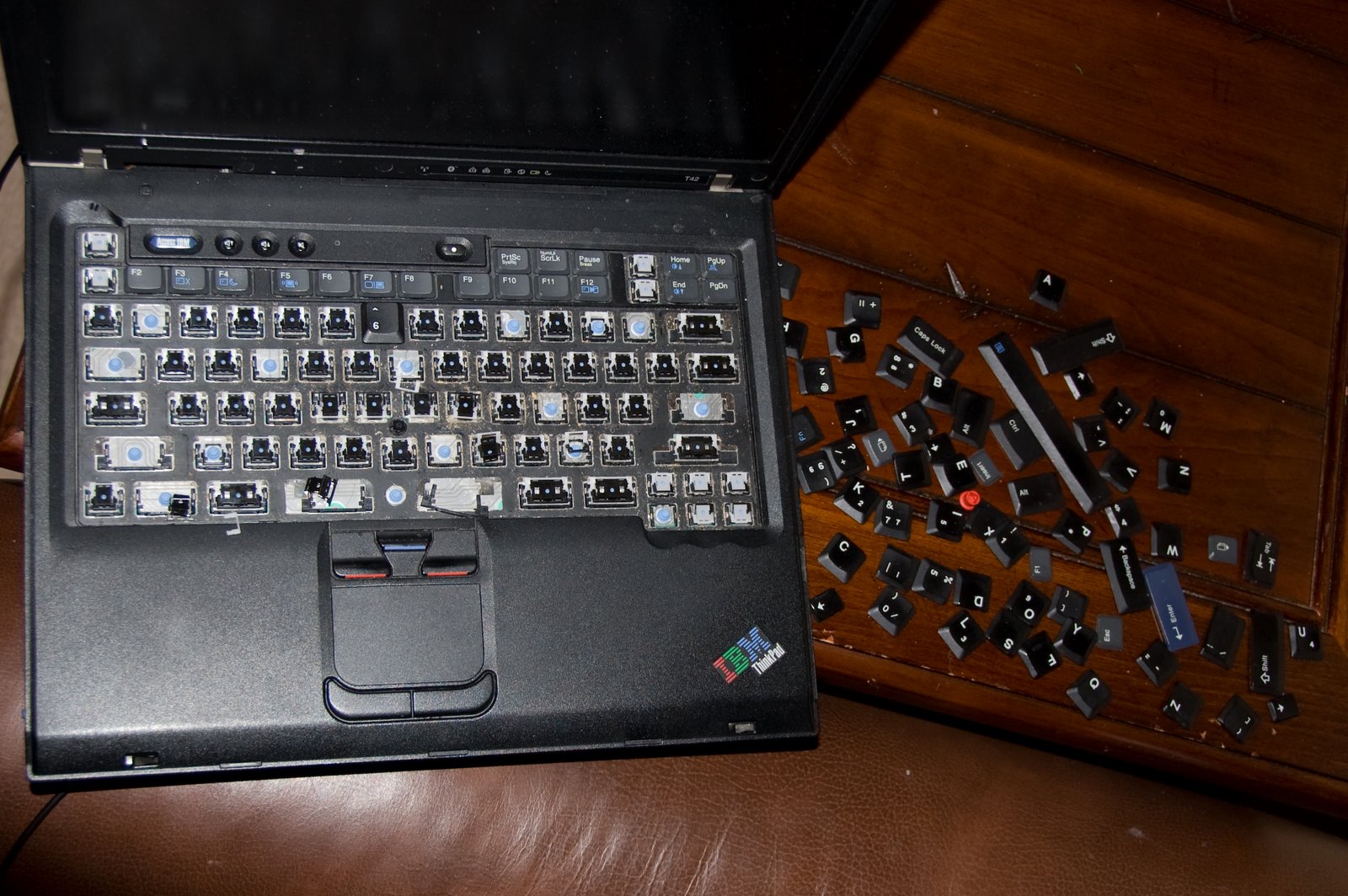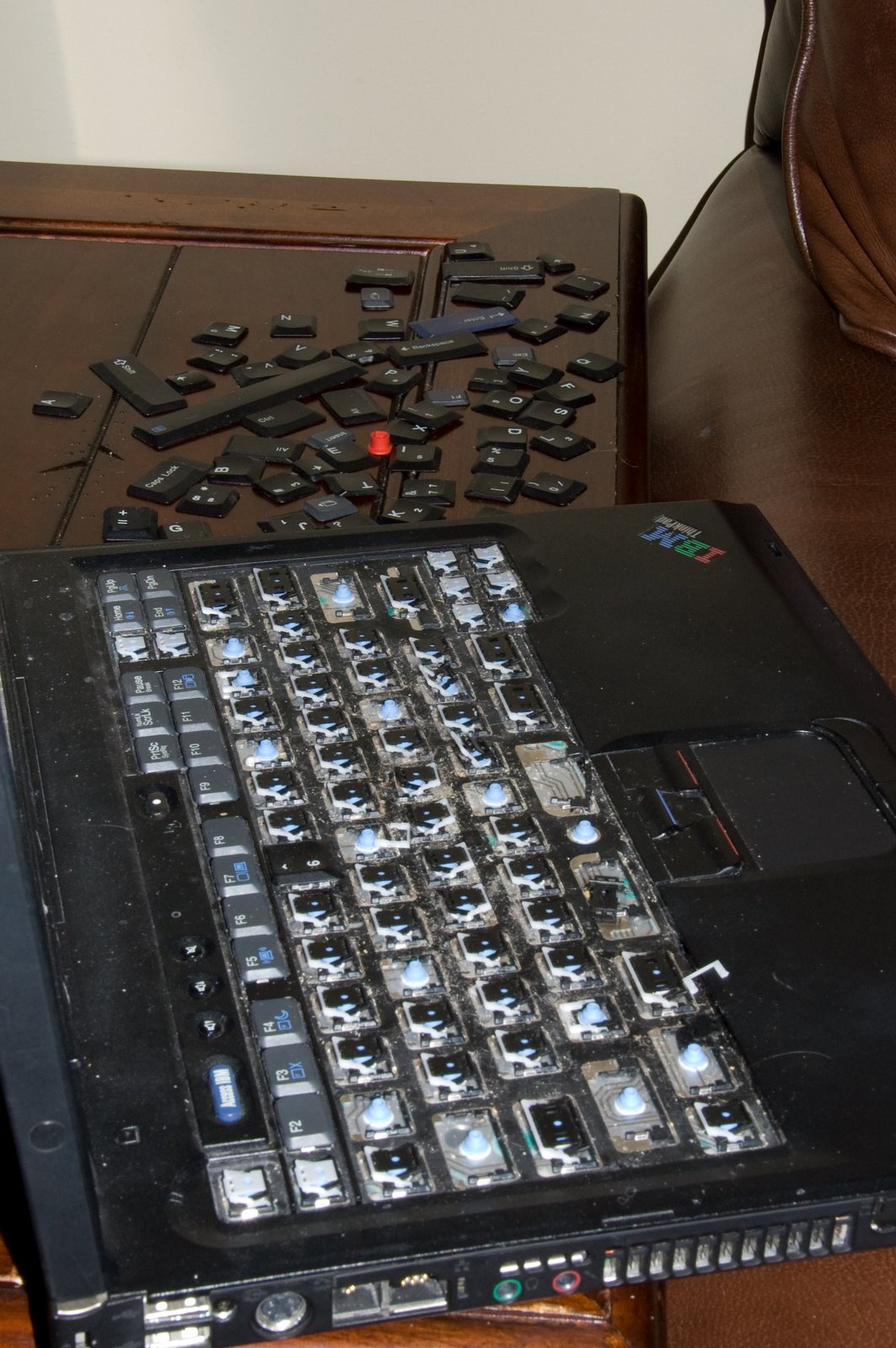 It wasn’t. I was able to get about 2/3 of the keys back on, but ended up ordering a replacement keyboard as he actually broke several of the plastic key mounts.
